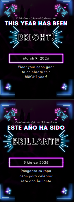 125th Day of School — March 9, 2026 Theme: Neon — "This year has been bright!"