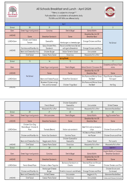 April Lunch Menu